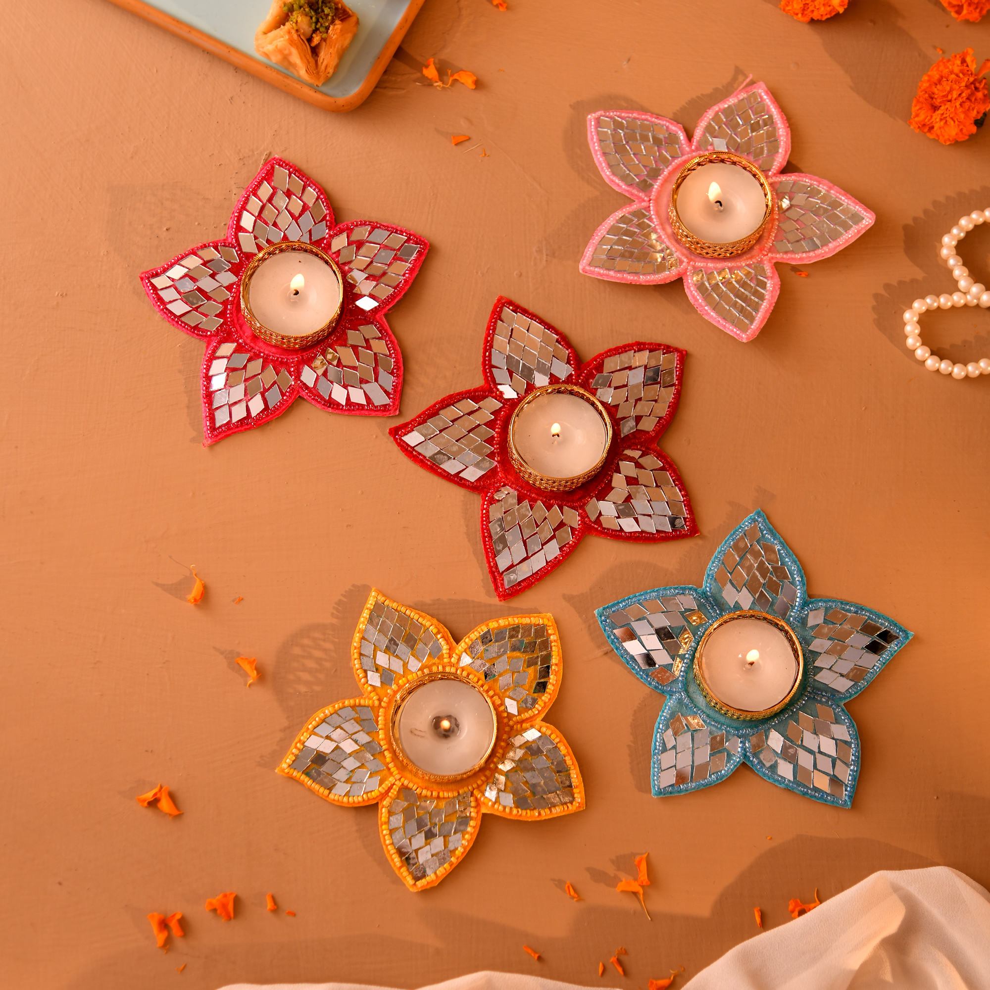 Mirror Floral Tealight Candle Holder ₹299