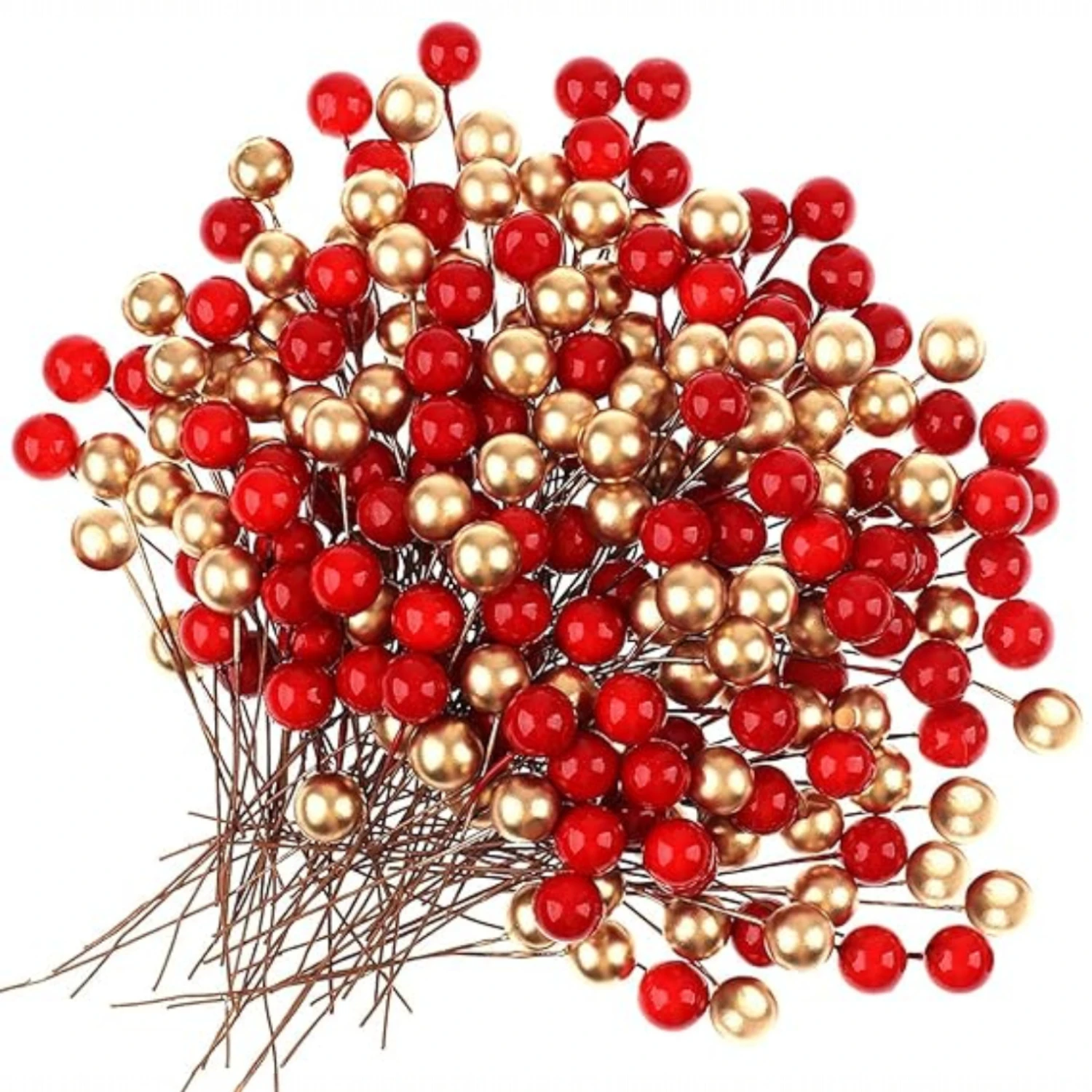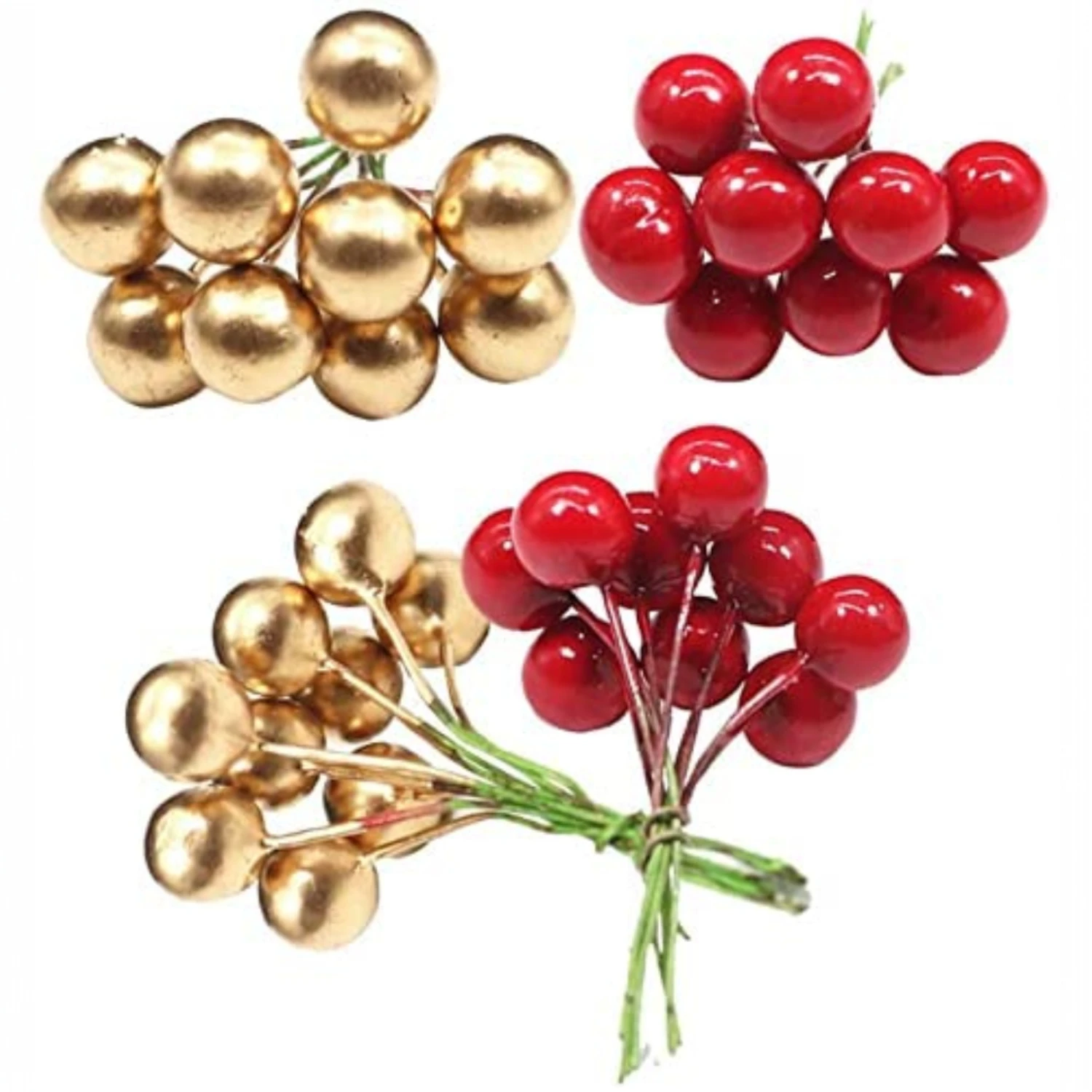 These artificial Holly Berries is durable and reusable. These Christmas berries are bright and shiny, artificial berries look like real holly berries, They are lightweight and flexible to blend with other Christmas decorations.These artificial holly berries is made of foam covered with a glossy coating with vibrant color and bright surface, inside the stem is iron wire. They can be slightly bent and shape according to your needs.These lovely berries are good for brightening up Christmas Wreath and Garland also can be used for floristry craft, wedding and party decoration, Christmas card making, Christmas tree decoration, Christmas crafts. Add Christmas Atmosphere.