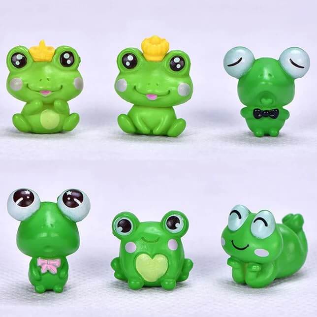 Brighten up your décor with this delightful set of mini frog figurines that bring a touch of playfulness to any space. Each frog is uniquely designed with charming details — from crowns and hearts to joyful smiles — creating a lively pond scene full of personality. Made from durable resin, these colorful miniatures are perfect for fairy gardens, aquariums, plant pots, or tabletop decorations. With tiny extras like a duck, bridge, and lotus flowers, this set adds a whimsical and cheerful vibe wherever it’s placed, making it an ideal choice for craft lovers and collectors alike.