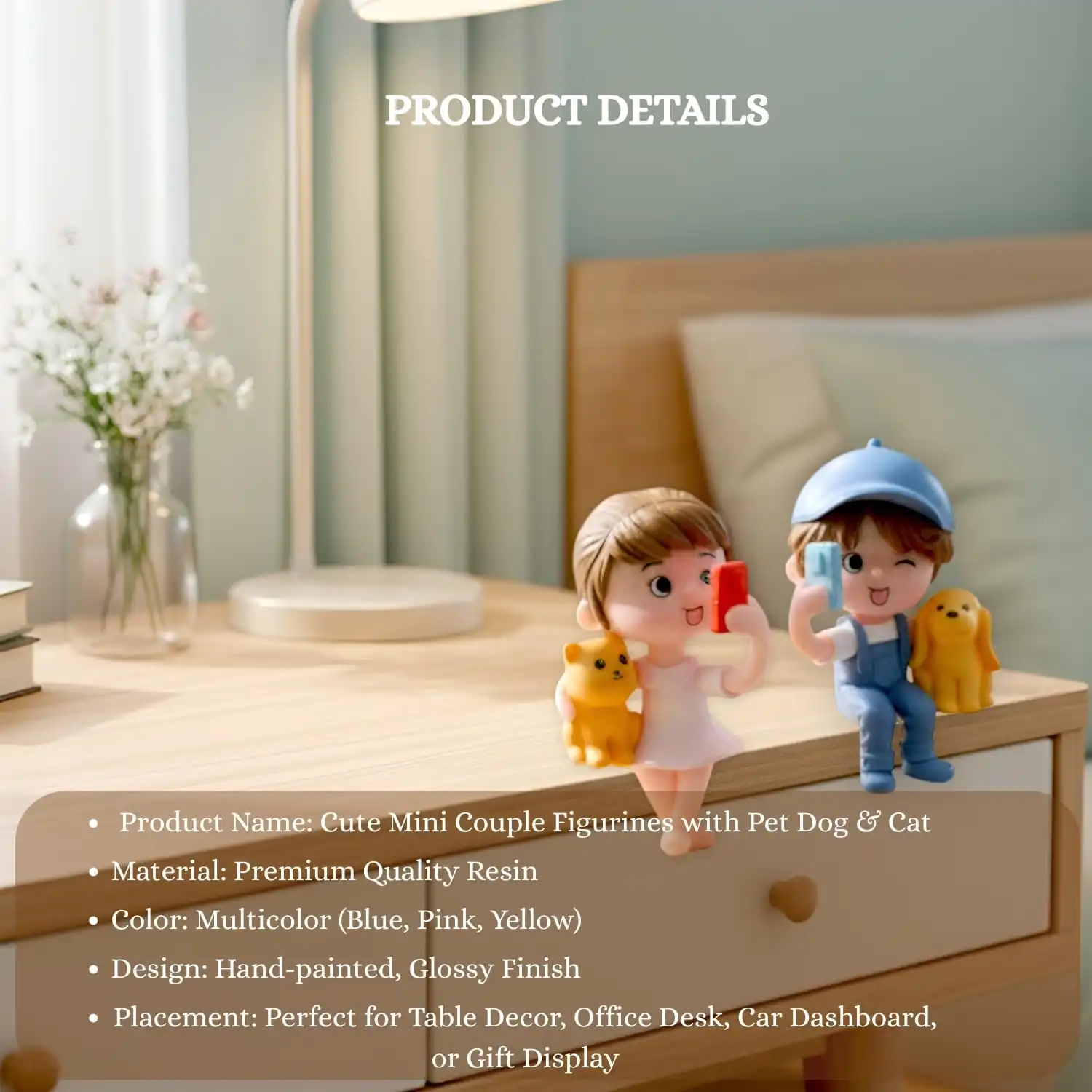 Package Content: 1 Pair of Miniature Couple , Material – Resin, Size-Mini.This two couple express love, closeness, healing, courage, hope? emotions of a life well lived,to represent an emotion or mark a memory.Idols For: Home d?cor, car Dashboard , miniature Figurine d?cor items for Garden decorations. Small showpieces idols for Living Room Decorative Items & birthday anniversary valentines day gift purposes.Suit for : Wedding decoration, festival decoration, festival gifts and wedding party, valentine gift, valentines day gift, gift for girlfriend, boyfriend, husband, wife, friends, men, women, fiance, birthday, anniversary, gift for couple, miniature decor items, miniature gifts, home decor items for living room, long leg hanging dolls couple, romantic gifts, kissing couple showpiece, house warming gifts for new home, decorative items for home, wall decoration items.This couple dolls express love, closeness, healing, courage, hope? emotions of a life well lived.