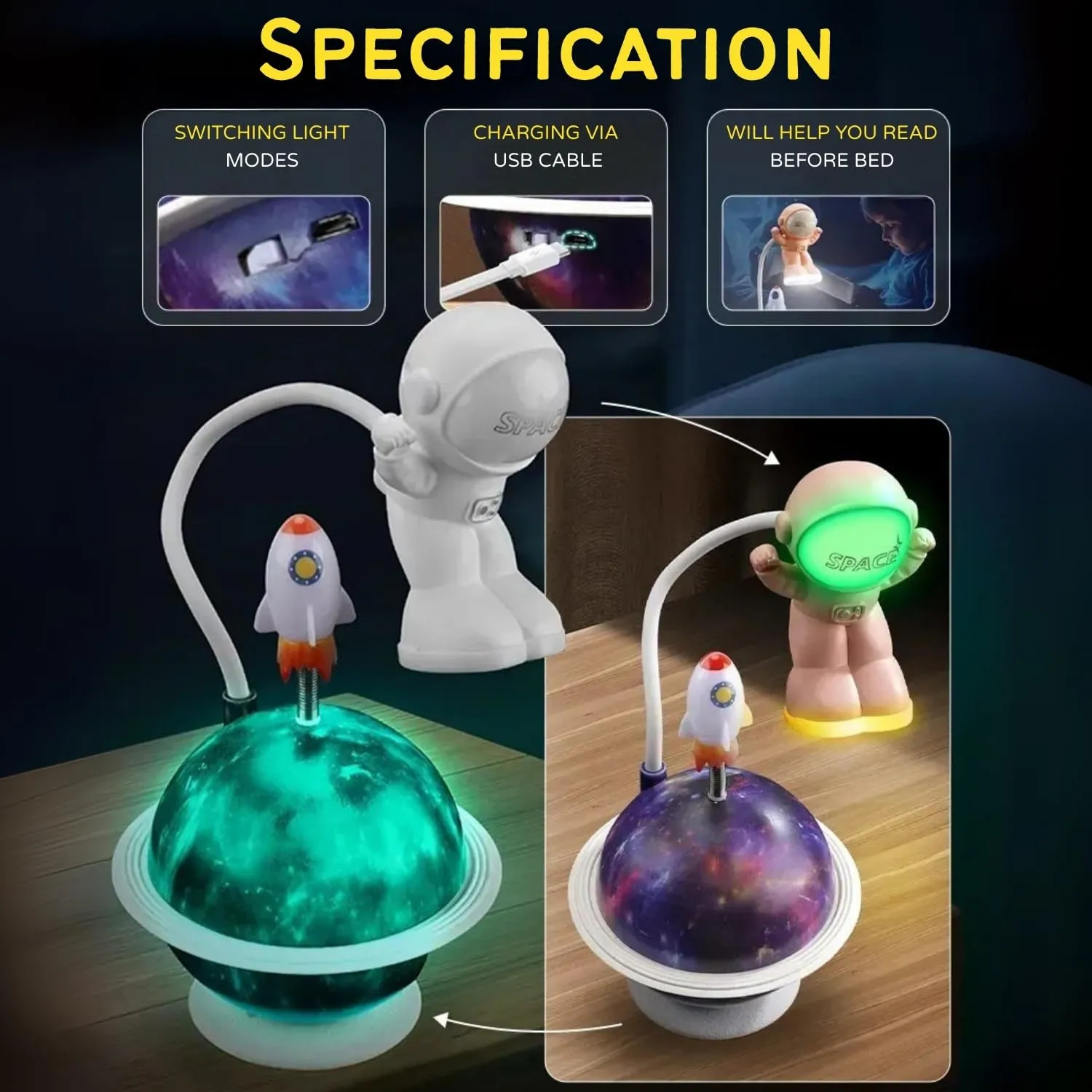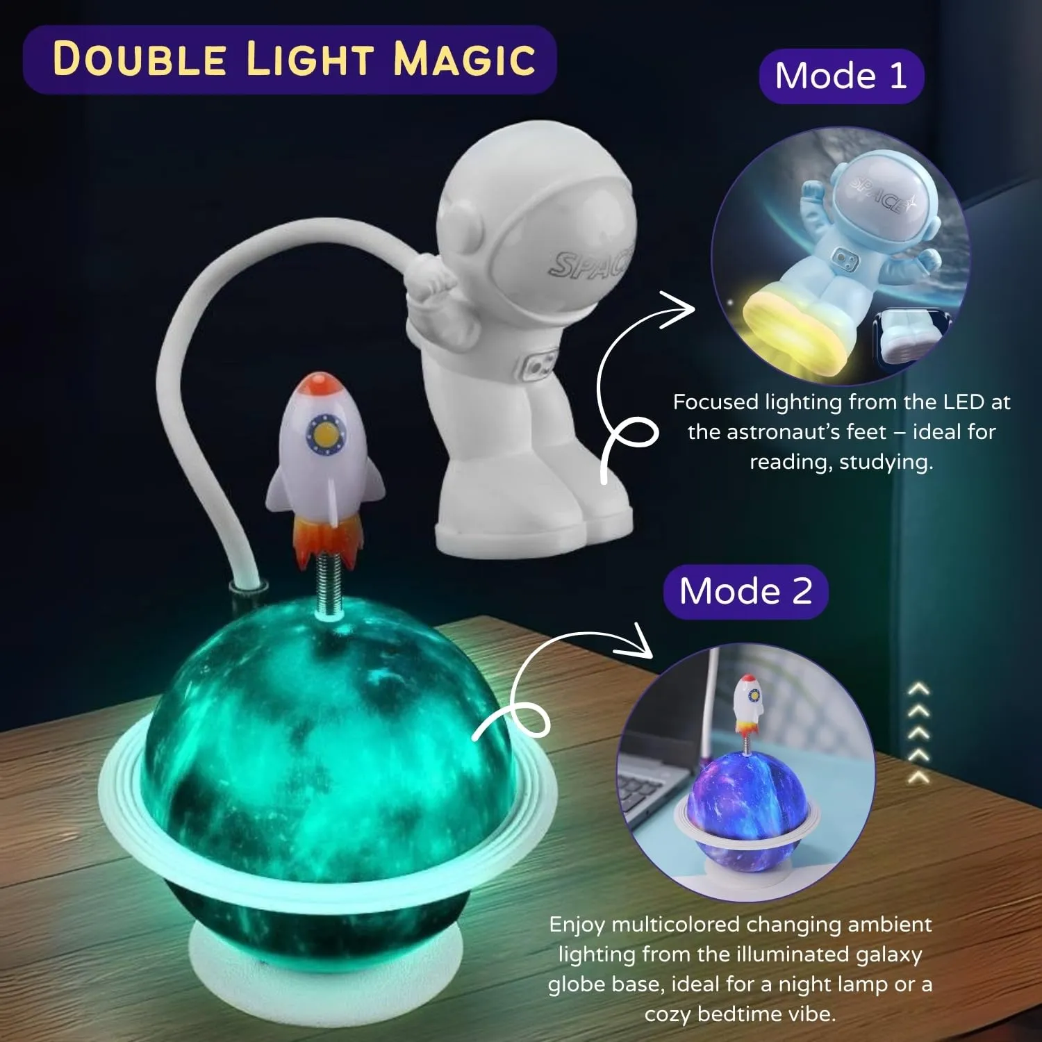 Pakage Content : Ascension Astronaut Galaxy 3D Moon Lamp with Rocket Multi-Color LED Night Light for Office & Home D?cor (Assorted).Emits a warm, calming glow that?s easy on the eyes, creating a peaceful ambiance ideal for sleeping, meditating, or simply relaxing. Perfect for bedrooms, kids’ rooms, or prayer corners without disturbing deep rest.Equipped with long-lasting, low-power LED technology that saves electricity while delivering consistent brightness. Ideal for all-night use without worrying about high energy bills or frequent replacements.This cute night light will be a best gift for children and adult. Also a good gift for birthday, children’s day, Halloween, Christmas and New Year.The funny gifts : The best gift for friends, children, relatives. Ideal for Valentine’s Day, Birthday, Children’s Day, Halloween, Christmas and New Year. Suitable for outdoor camping, bedroom, college dormitory, office, party decoration, etc.