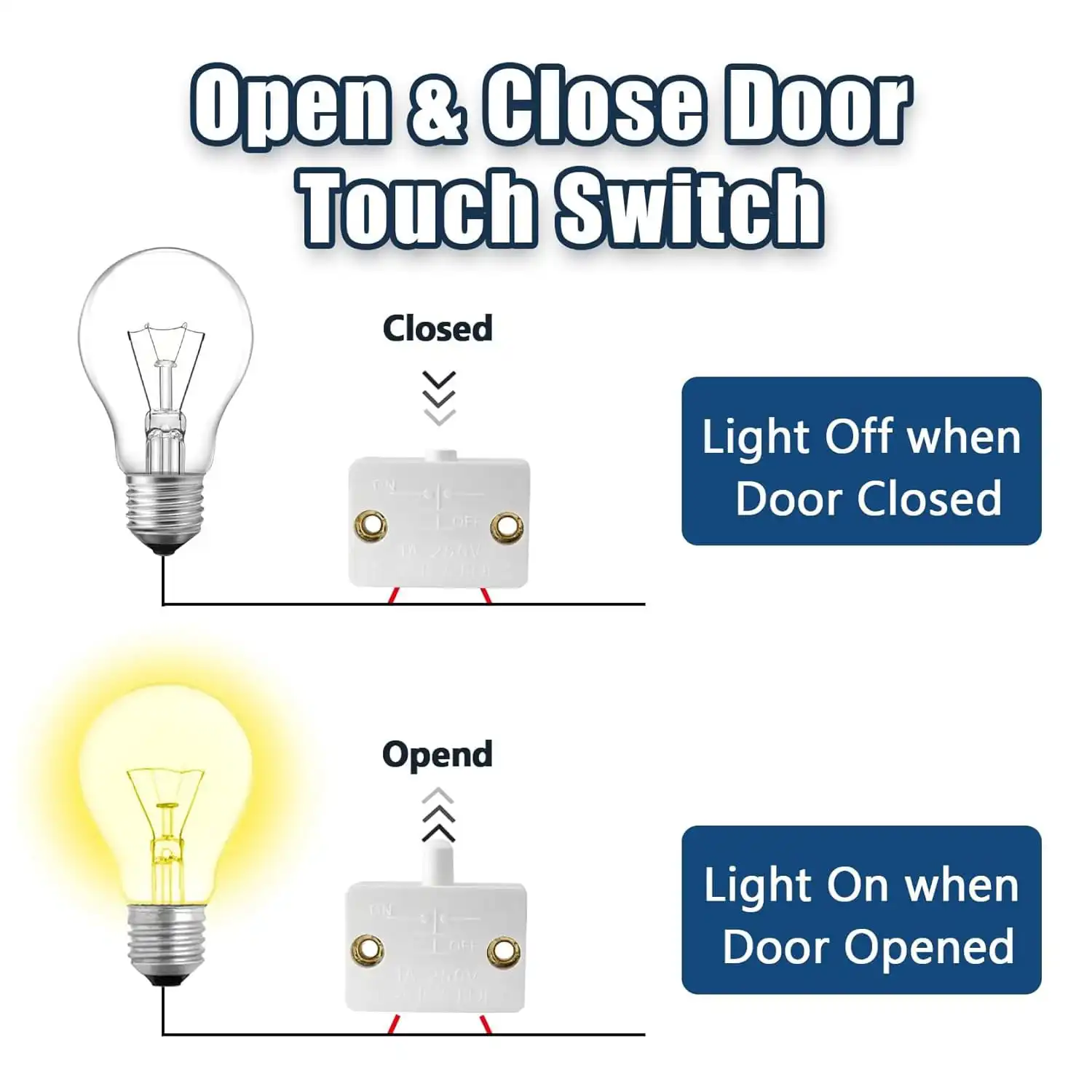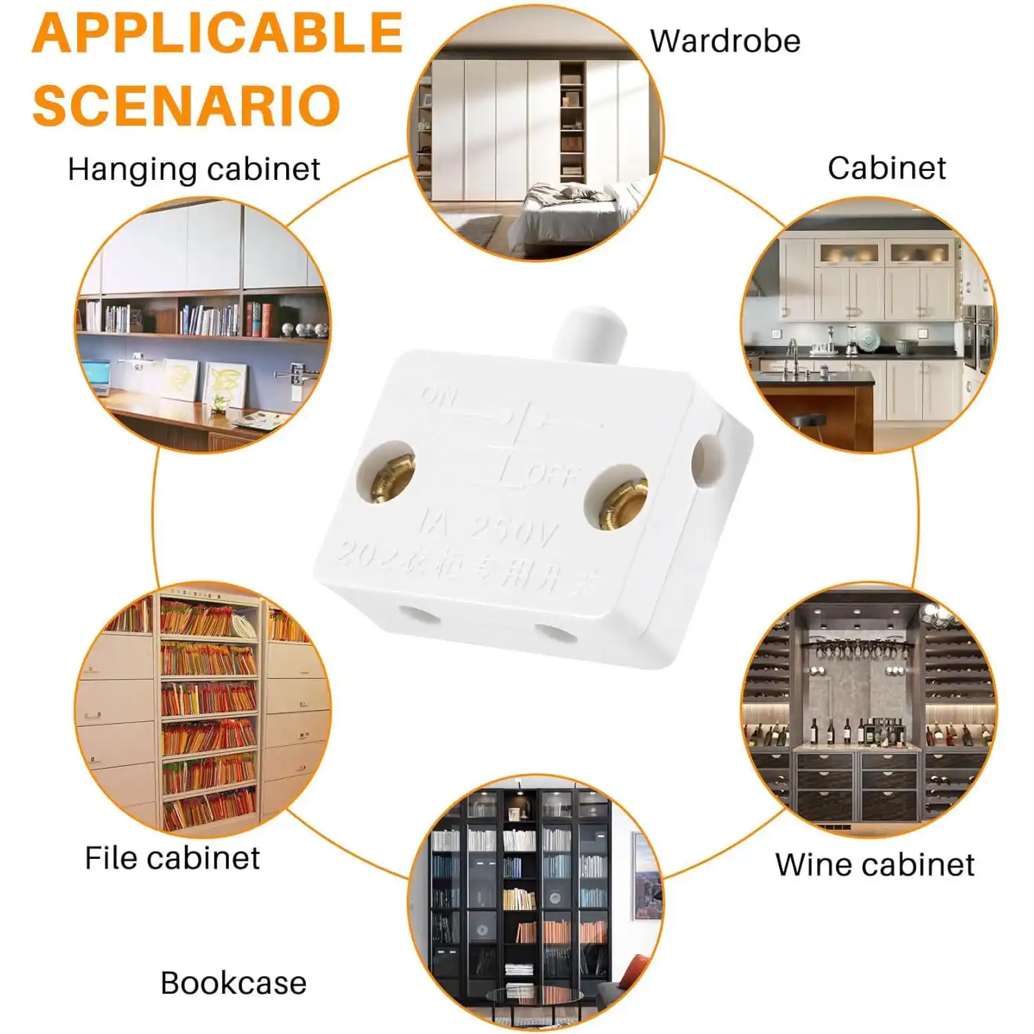 Made from high-quality white ABS plastic, this 1A 250V switch is compact, durable, and reliable. Its spring mechanism ensures consistent operation and long-lasting performance. Ideal for cupboards, wardrobes, drawers, and showcase lights, this switch saves you from manual toggling and power waste.