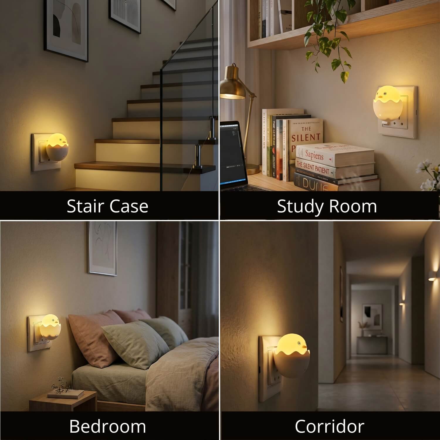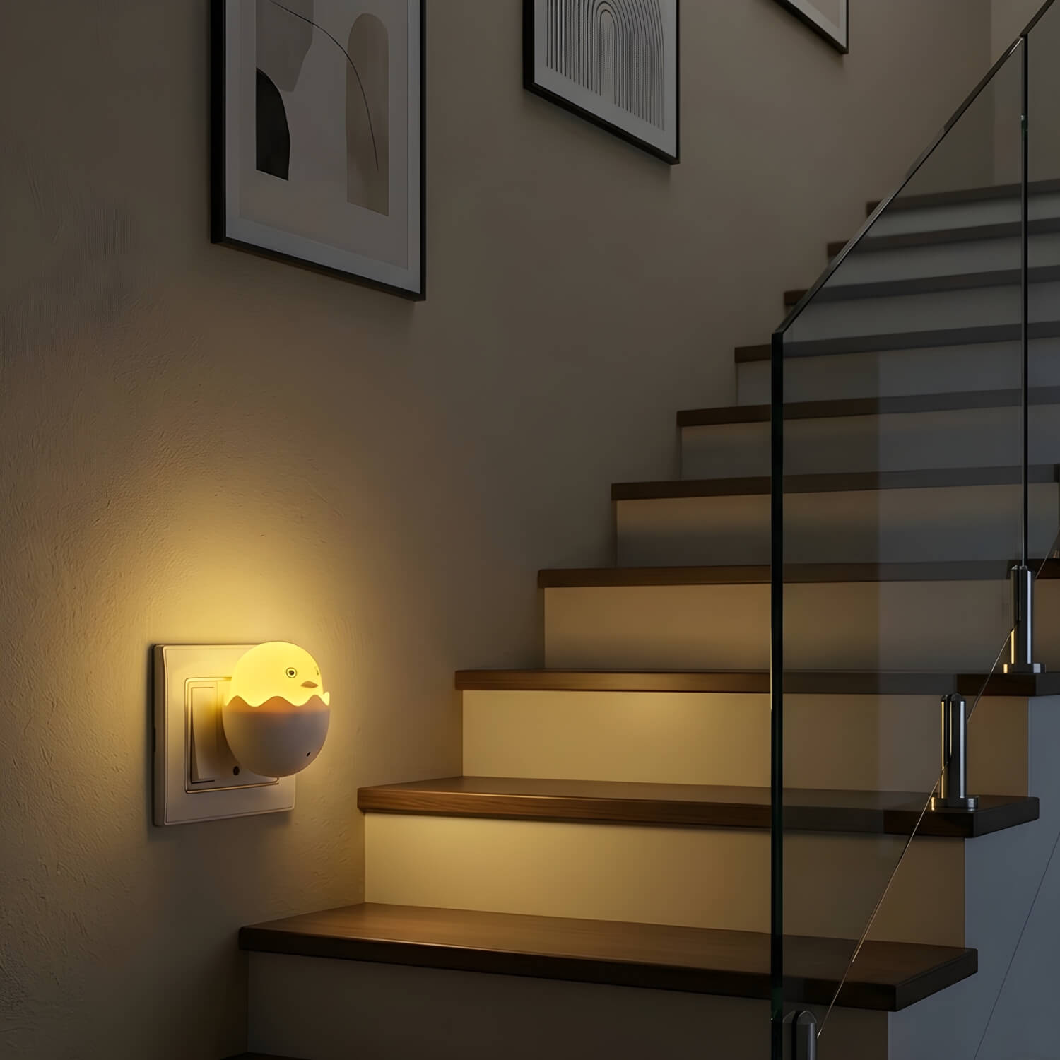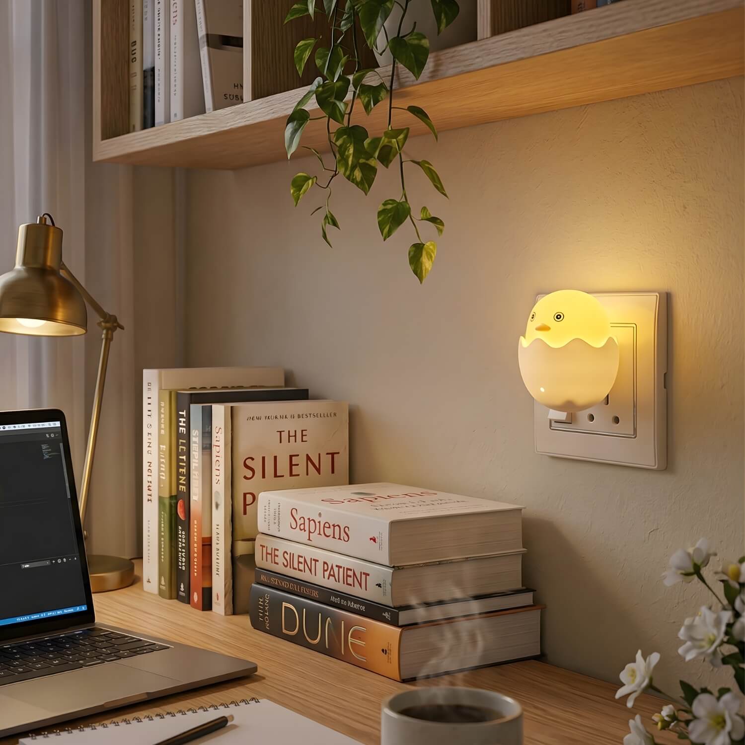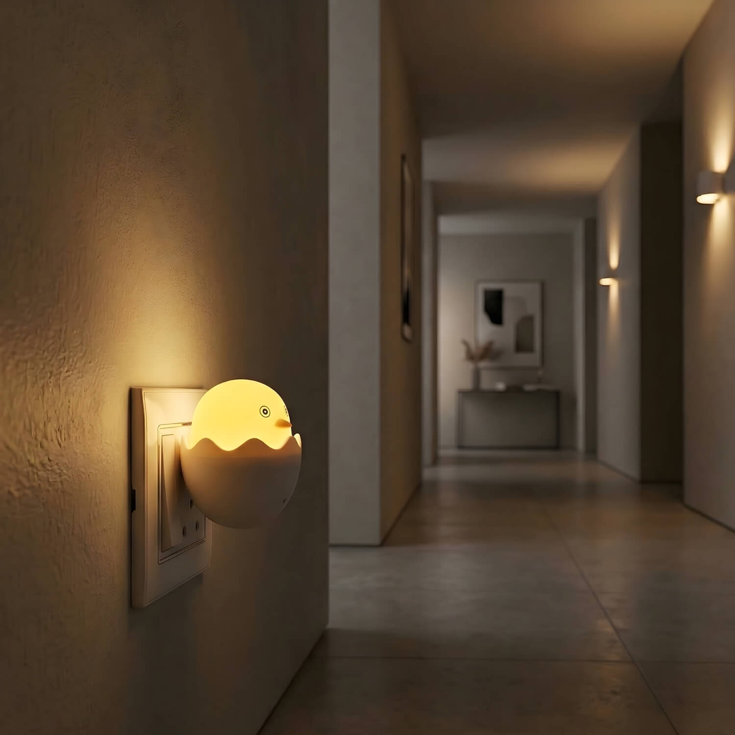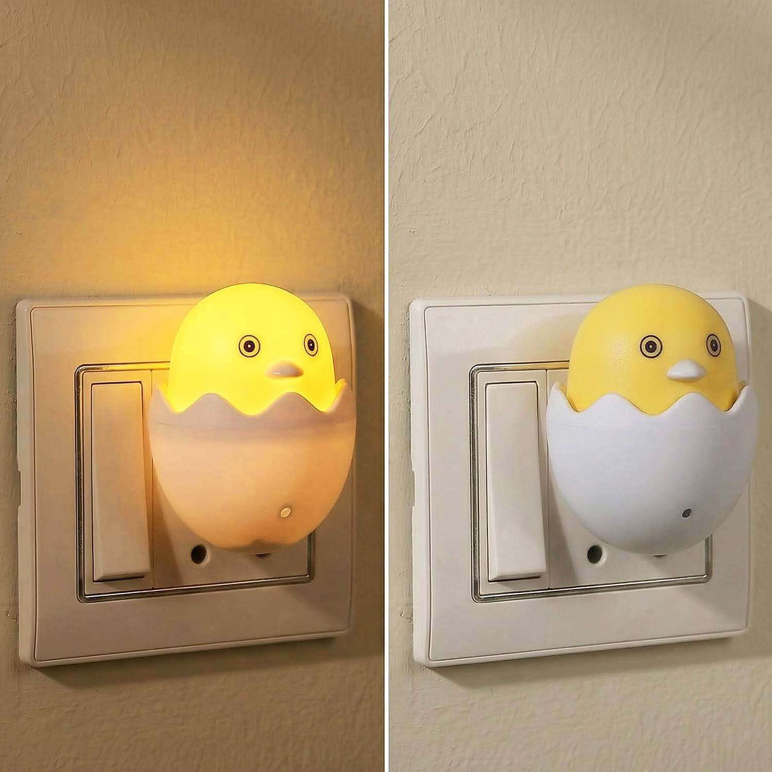 Add a touch of charm and functionality to your space with this adorable chick egg plug-in night lamp. Designed to fit seamlessly into a standard wall socket, this compact lamp features a cute yellow chick emerging from a cracked white eggshell, bringing a playful and cozy vibe to any room. Its soft, ambient glow provides gentle illumination, making it perfect for bedrooms, nurseries, hallways, or late-night navigation without disturbing sleep.
