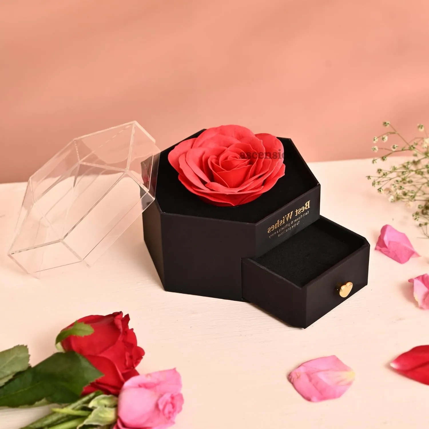 Pacakge Content : 1 Eternal Rose Gift Box For Valentine day.Crafted from a genuine rose, this eternal flower is preserved using advanced techniques to maintain its beauty for years without water or sunlight. A symbol of forever love, it?s a meaningful gift for your partner that will never wilt.The rose comes beautifully encased in a premium gift box that adds a touch of sophistication and charm. It?s perfect for gifting on special days and makes an unforgettable impression at first glance.This rose represents love that never fades. It?s a powerful expression of everlasting affection and devotion, perfect for anniversaries, weddings, engagements, or simply to say “I love you” in a lasting way.Place it in your living room, bedroom, or vanity space as a symbol of love and elegance that enhances the vibe of your surroundings.