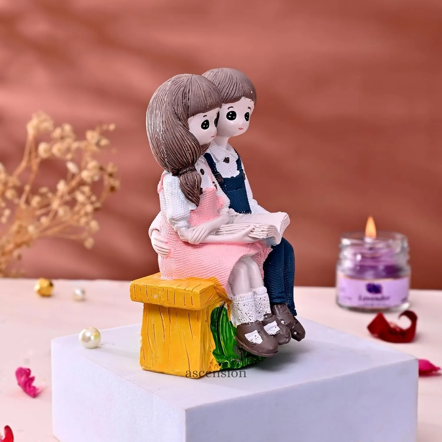 This endearing figurine depicts a sweet moment between a young couple sitting closely on a wooden bench, sharing a book. With a gentle and innocent charm, the boy and girl are styled in vintage-inspired outfits ? the girl in a soft pink dress with matching boots and the boy in blue overalls paired with a cream shirt. Their large, expressive eyes and calm demeanor evoke a sense of youthful affection and quiet companionship. The open book resting on their laps symbolizes shared interests, learning, and togetherness, making this piece a beautiful representation of young love, friendship, or the joy of simply spending time with someone special. Crafted from high-quality resin, the figurine features fine details and a smooth finish, making it a perfect decorative piece for desks, bookshelves, or bedside tables. Ideal as a gift for birthdays, Valentine’s Day, or anniversaries, it adds a touch of sweetness and warmth to any space. This figurine captures the innocence of young connection and the simple, lasting moments that build meaningful relationships.