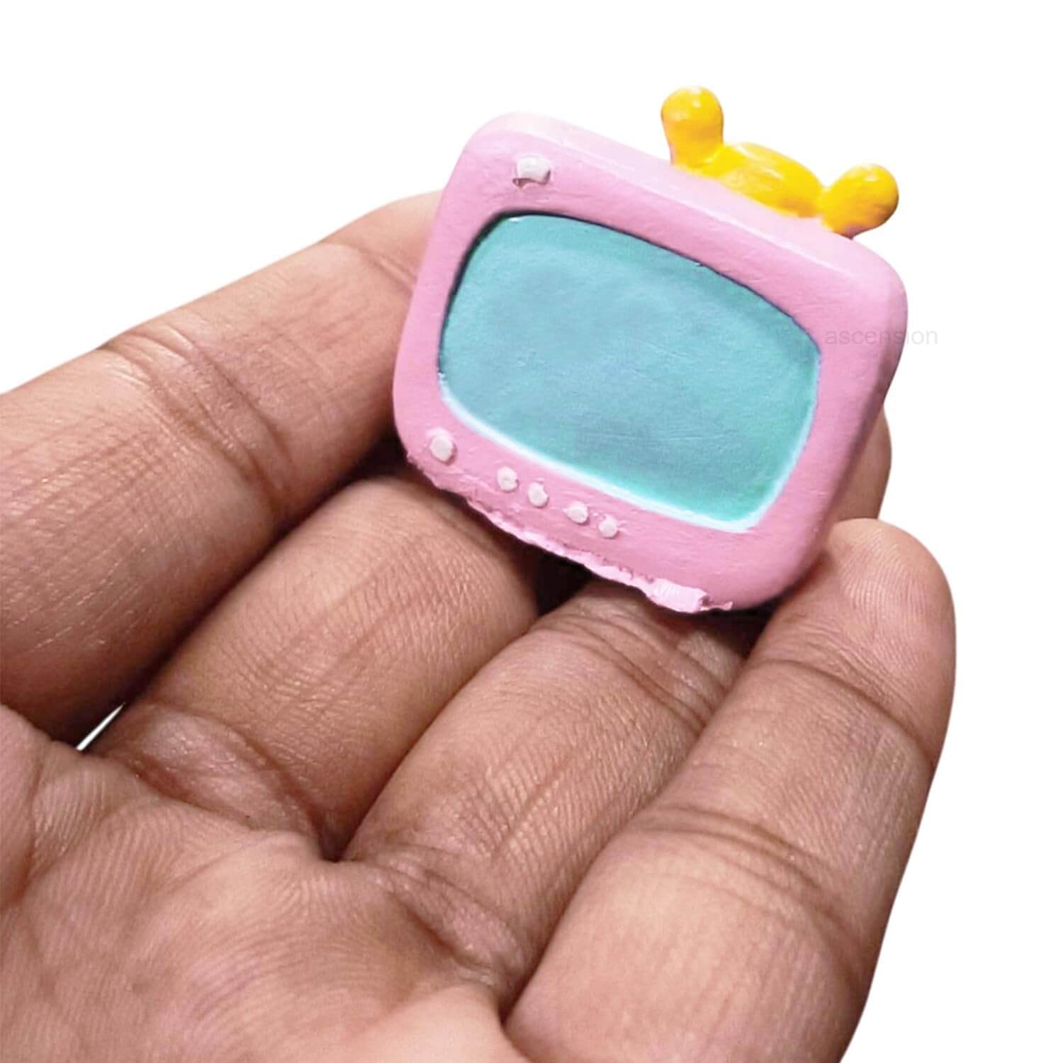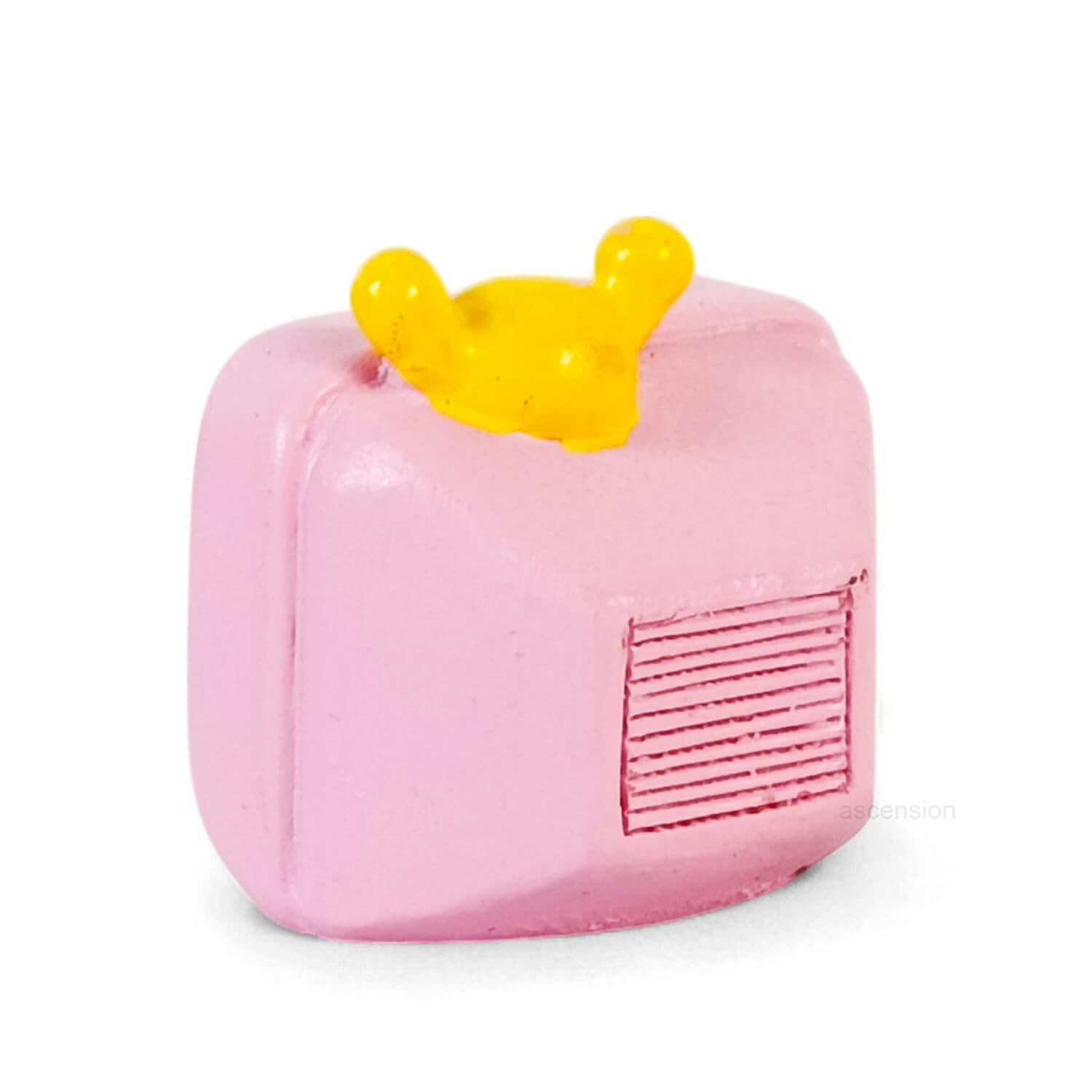 The Mini Pink Television for Tabletop Dollhouse and Fairy Garden Decoration is a delightful miniature accessory that brings a nostalgic charm to any setting. Designed with meticulous attention to detail, this tiny television captures the essence of vintage aesthetics, making it a perfect addition to dollhouses, fairy gardens, or as a quirky desktop figurine. Crafted from high-quality plastic, the mini television boasts a vibrant pink hue that adds a pop of color to its surroundings. Its compact size ensures it fits seamlessly into various miniature settings, whether it’s a dollhouse living room or a whimsical fairy garden scene. The static color screen display mimics the look of a real TV, enhancing its realistic appeal. This attention to detail makes it not just a toy, but a collectible piece that can be cherished by enthusiasts of all ages.