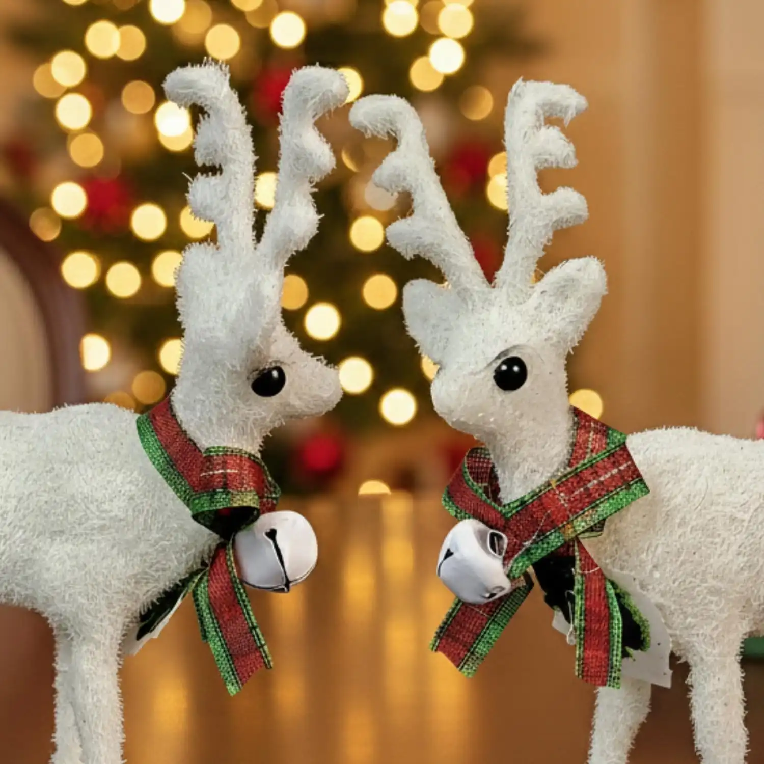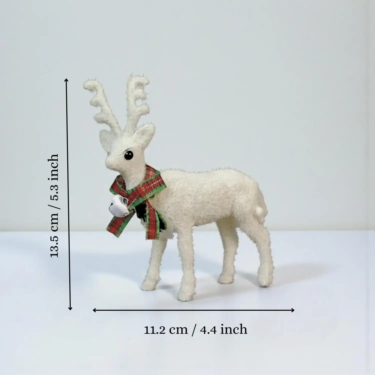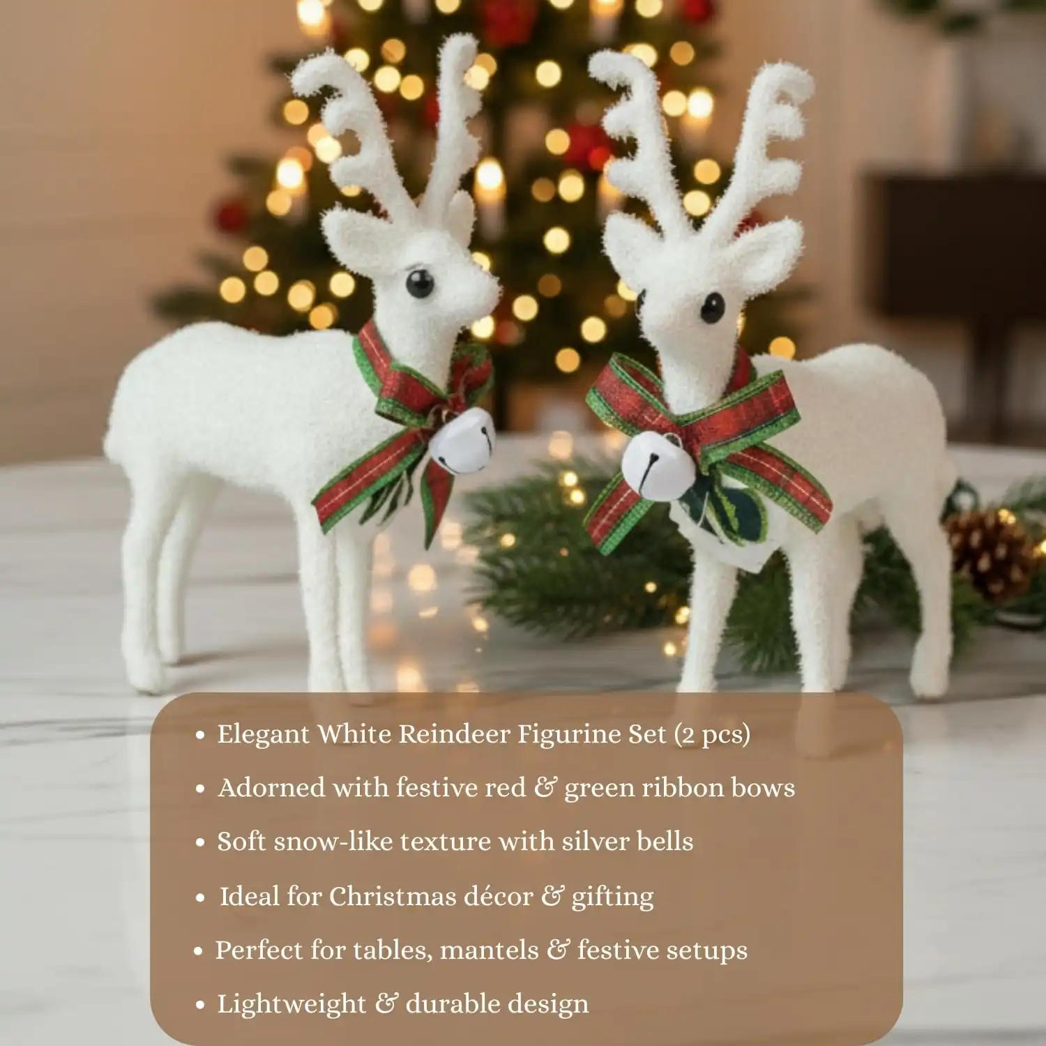 Package Content : Pack of 2 Christmas Reindeer Figurines.Elegant Festive Design: Beautifully crafted white reindeer figurines bring a classic and sophisticated touch to your Christmas decorations.Premium Quality: Made from durable, lightweight resin with a fine matte finish that ensures long-lasting charm and stability.Complete D?cor Look: Comes accented with frosted pine leaves, pinecones, and colorful ornaments to enhance your festive atmosphere.Gift-Ready & Reusable: A timeless decoration that can be used year after year ? perfect gift for family, friends, or Christmas lovers.