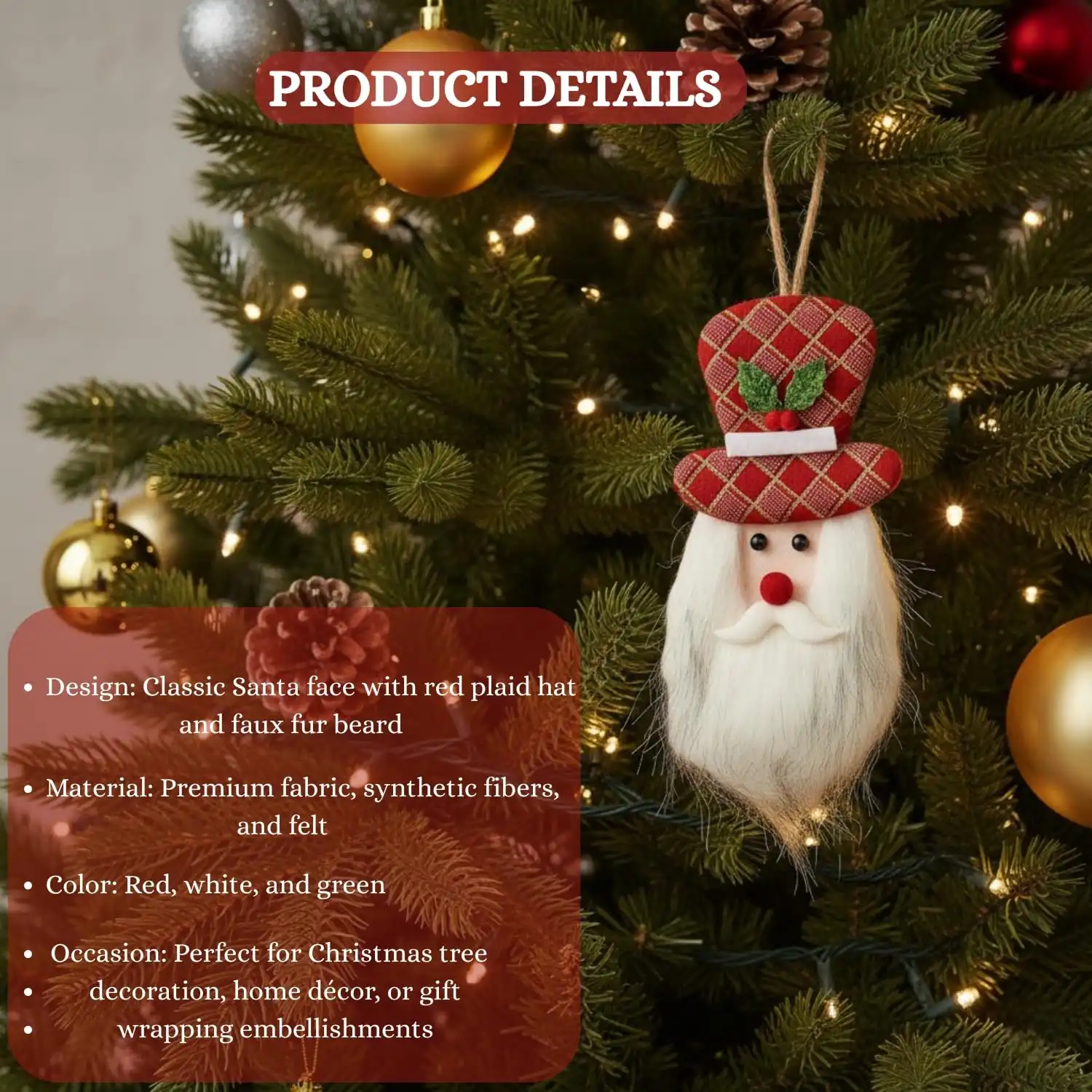 Package Contains : Pack of 2 Santa Claus Hanging Ornament.Made of plush fabric materials, which is soft and cozy touching, durable and lightweight, not easy to fade.The Xmas hanging decorations are ideal gift to your families and friends on Thanksgiving Day, Christmas Day, new year, which bring them your best wishes.Spruce up your holiday home decor with the Merry Christmas Ornaments featuring Santa Claus Snowman Reindeer. Perfect for hanging on your Christmas tree, mantel, or windows, elevating the festive atmosphere in your living room, dining area, or entryway home decor.Christmas decorations items, christmas tree decoration items, christmas santa claus hanging, christmas hanging ornament, christmas hanging ornament for home, christmas hanging decorations, christmas wall hanging decorations, christmas tree hanging decor, xmas decoration items for home, xmas tree decorations items, christmas decorations items bells, christmas decorations items for window, secret santa gifts for office, secret santa gifts.