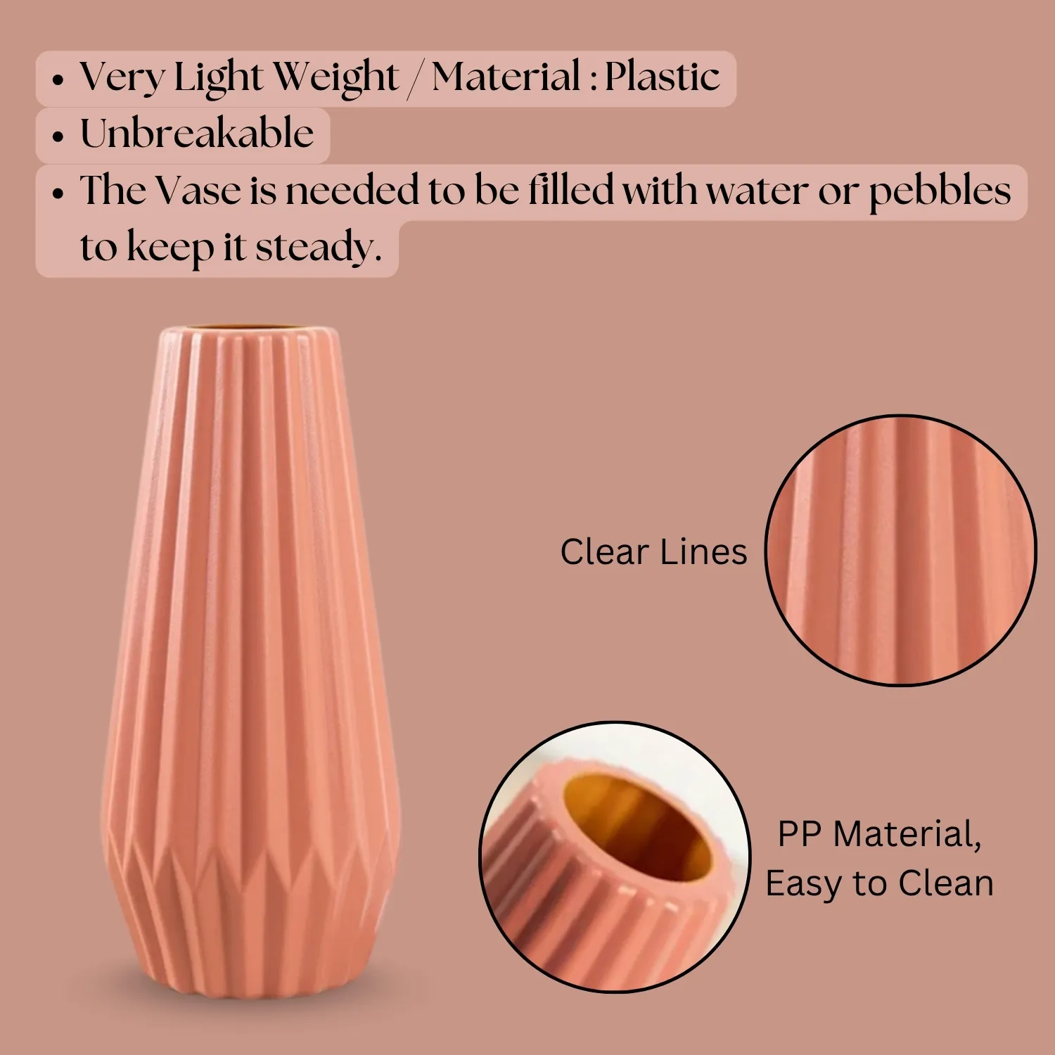 Enhance your space with this beautifully crafted Pack of 1 Flower Vases, designed to add elegance and charm to any setting. Made from high-quality unbreakable plastic, these vases are lightweight yet durable, making them a practical choice for everyday use. The smooth surface feels comfortable to touch, carries no odor, and remains easy to clean, ensuring long-lasting shine and freshness.