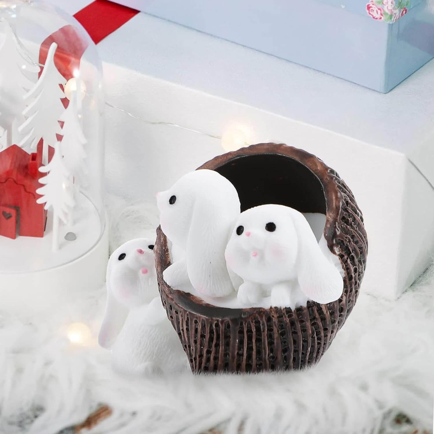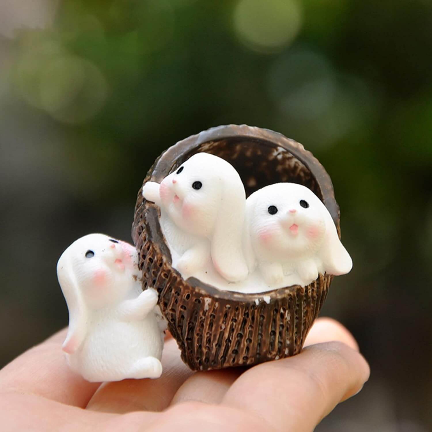 Add a touch of charm and cuteness to your décor with this delightful rabbit miniature figurine set. Featuring adorable bunny characters placed around a small basket, these mini figurines are perfect for creating fairy gardens, terrarium scenes, and miniature landscapes.