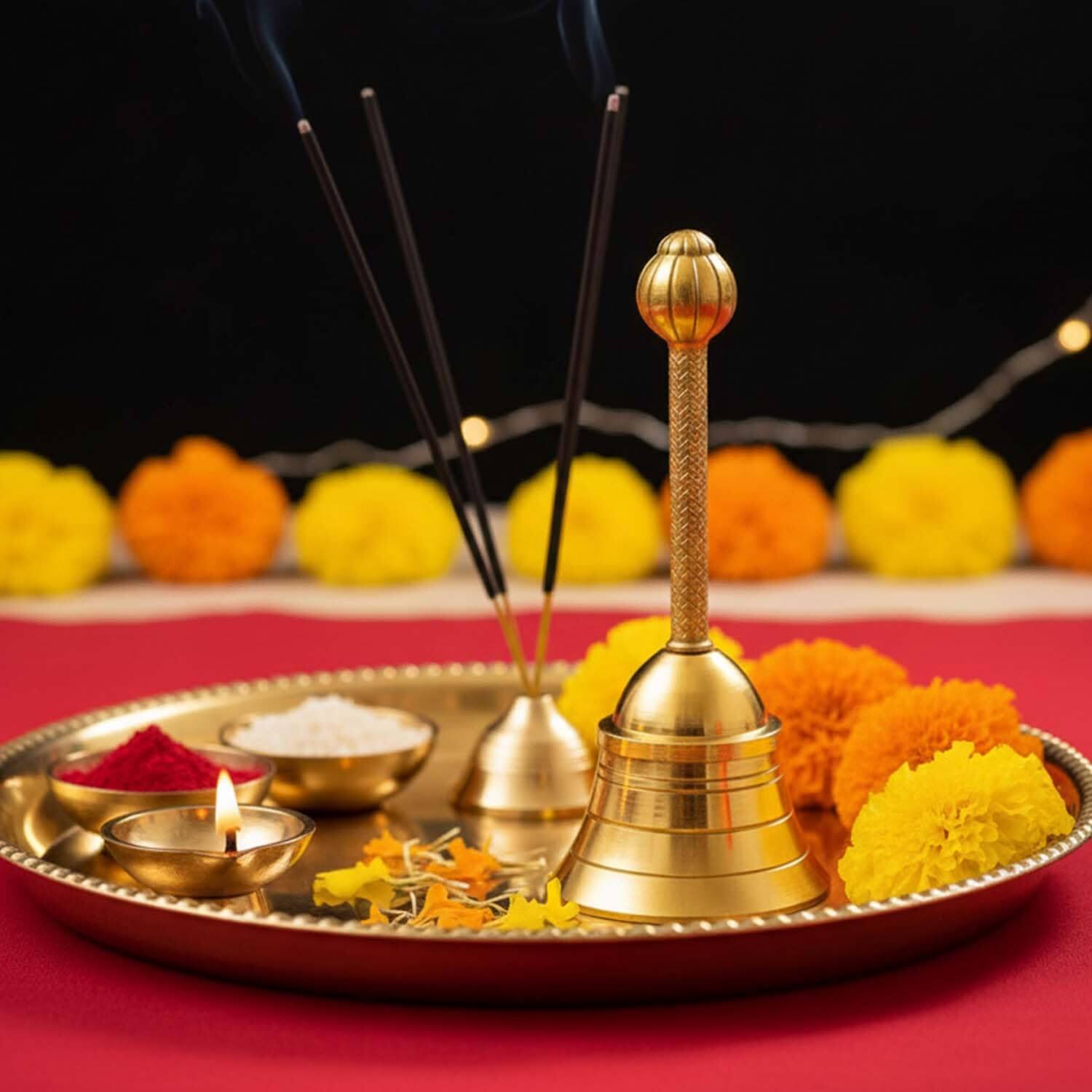 Bring a touch of tradition and spirituality to your home with the Ascension Metal Pooja Bell, beautifully crafted for daily prayers and religious ceremonies. Made from high-quality brass, this traditional temple bell features a smooth finish and an elegant long handle that offers a comfortable grip while ringing during pooja and aarti. The bell produces a clear, soothing sound that helps create a peaceful and divine atmosphere, making your prayer time more focused and spiritually uplifting.Perfect for home temples, pooja rooms, meditation spaces, and religious rituals, this mandir ghanti is an essential accessory for Hindu worship practices. Its classic design complements all types of temple décor and adds a sacred charm to your prayer space. The durable brass construction ensures long-lasting use while maintaining its beautiful shine.The Ascension Metal Mandir Bell is also an excellent gift for housewarming, festivals like Diwali and Navratri, weddings, and other religious occasions, symbolizing positivity, devotion, and blessings for loved ones.