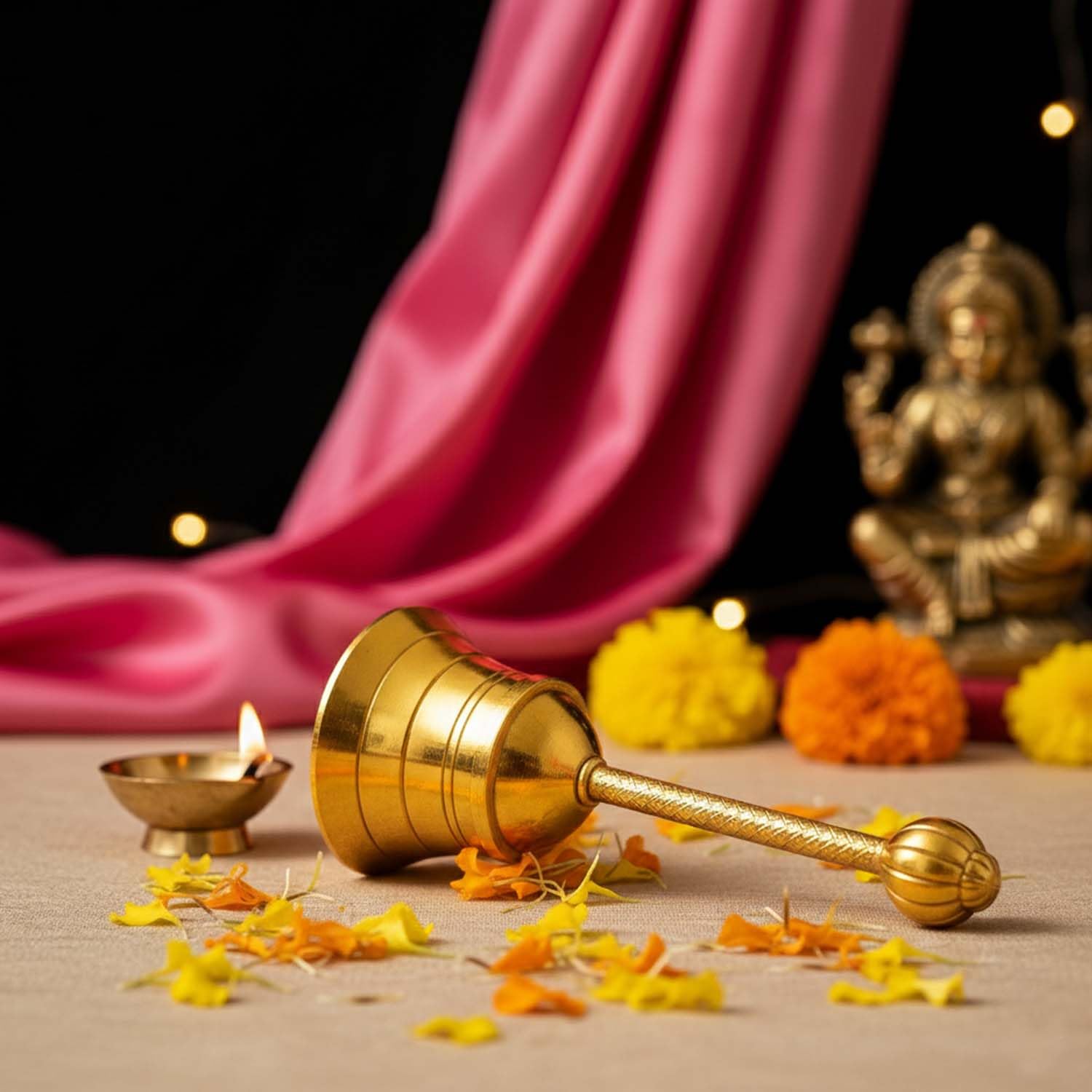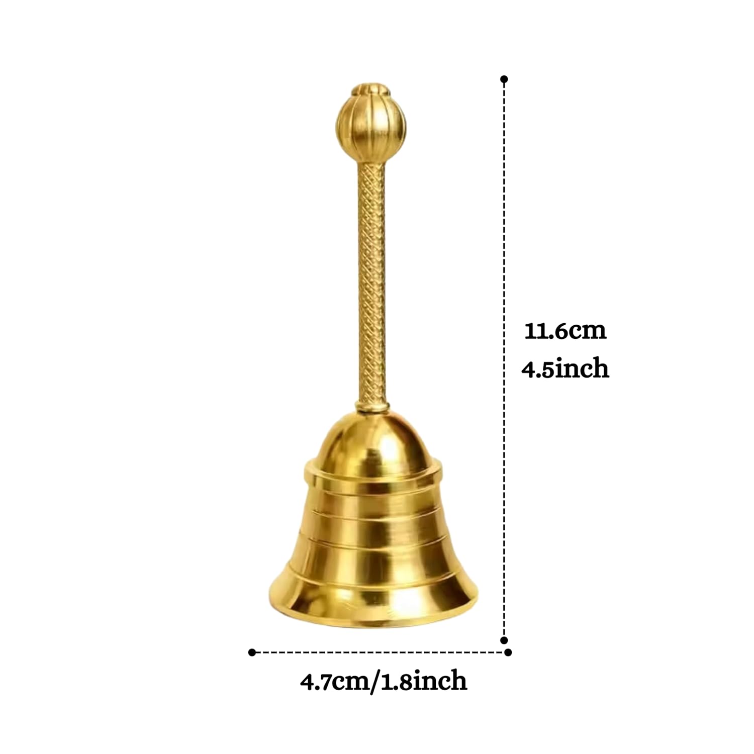 Bring a touch of tradition and spirituality to your home with the Ascension Metal Pooja Bell, beautifully crafted for daily prayers and religious ceremonies. Made from high-quality brass, this traditional temple bell features a smooth finish and an elegant long handle that offers a comfortable grip while ringing during pooja and aarti. The bell produces a clear, soothing sound that helps create a peaceful and divine atmosphere, making your prayer time more focused and spiritually uplifting.Perfect for home temples, pooja rooms, meditation spaces, and religious rituals, this mandir ghanti is an essential accessory for Hindu worship practices. Its classic design complements all types of temple décor and adds a sacred charm to your prayer space. The durable brass construction ensures long-lasting use while maintaining its beautiful shine.The Ascension Metal Mandir Bell is also an excellent gift for housewarming, festivals like Diwali and Navratri, weddings, and other religious occasions, symbolizing positivity, devotion, and blessings for loved ones.