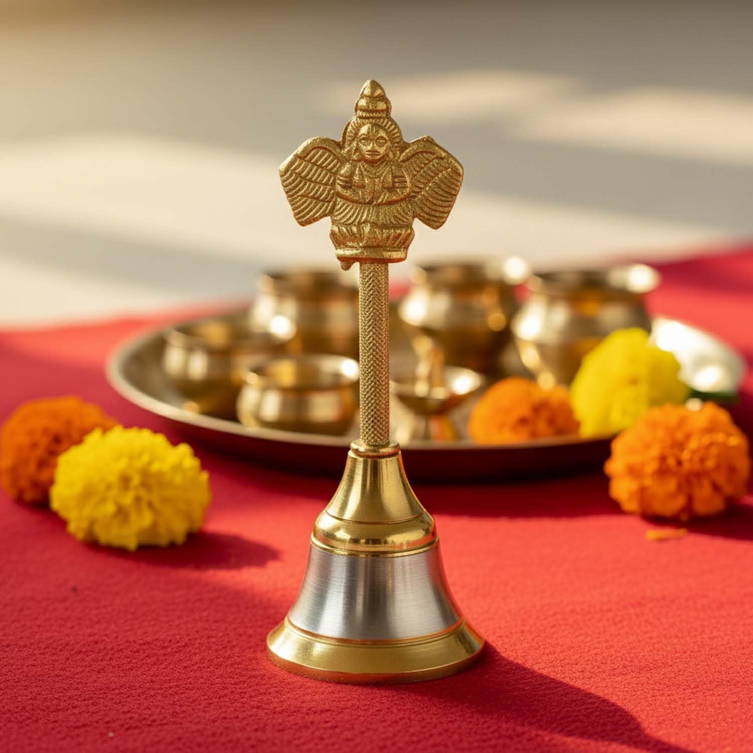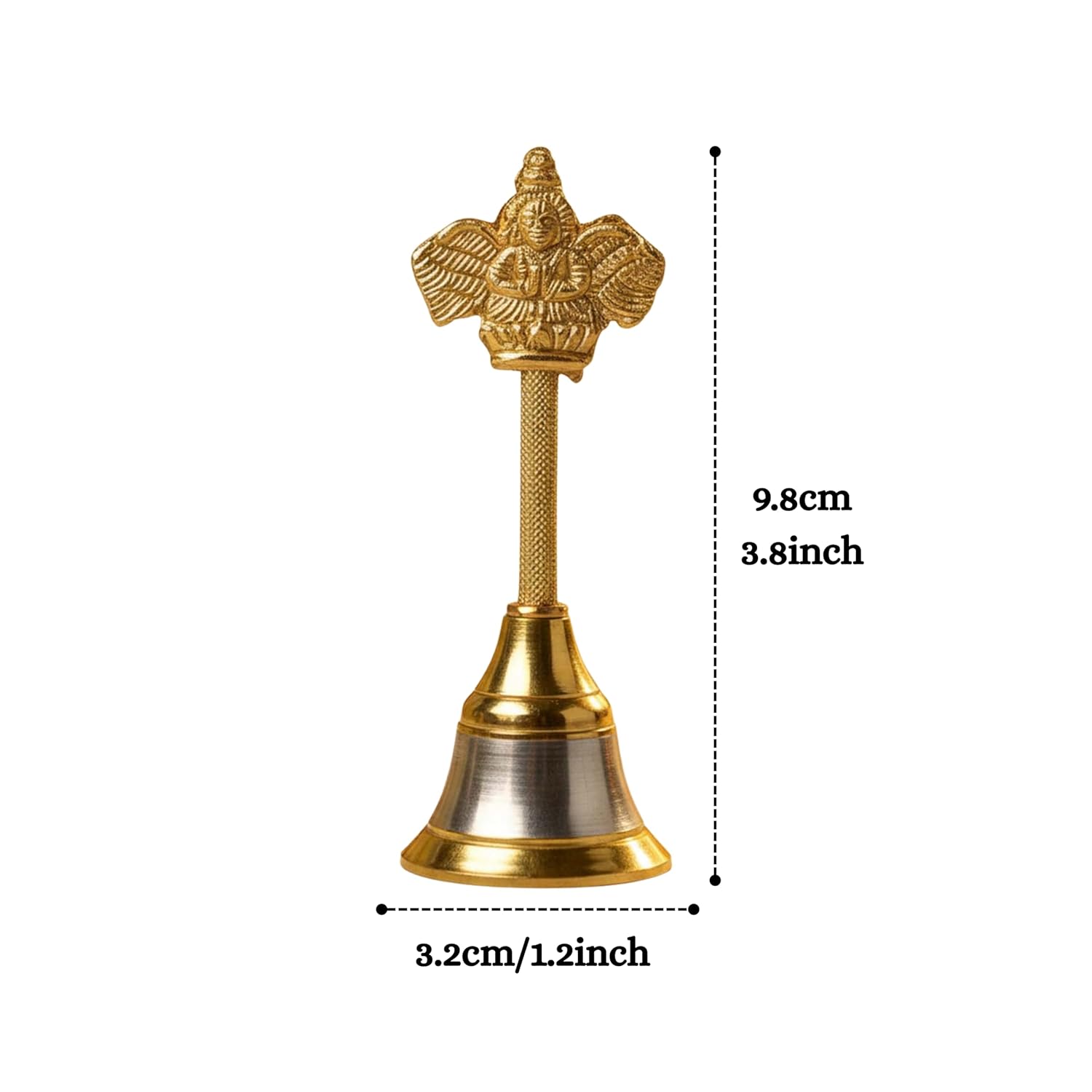 Enhance your puja ceremonies with this stunning pair of Garuda brass bells. Crafted from high-quality brass and silver-plated alloy, they feature intricately carved Garuda motifs. Their resonant sound adds a sacred touch to your rituals. Perfect for gifting.