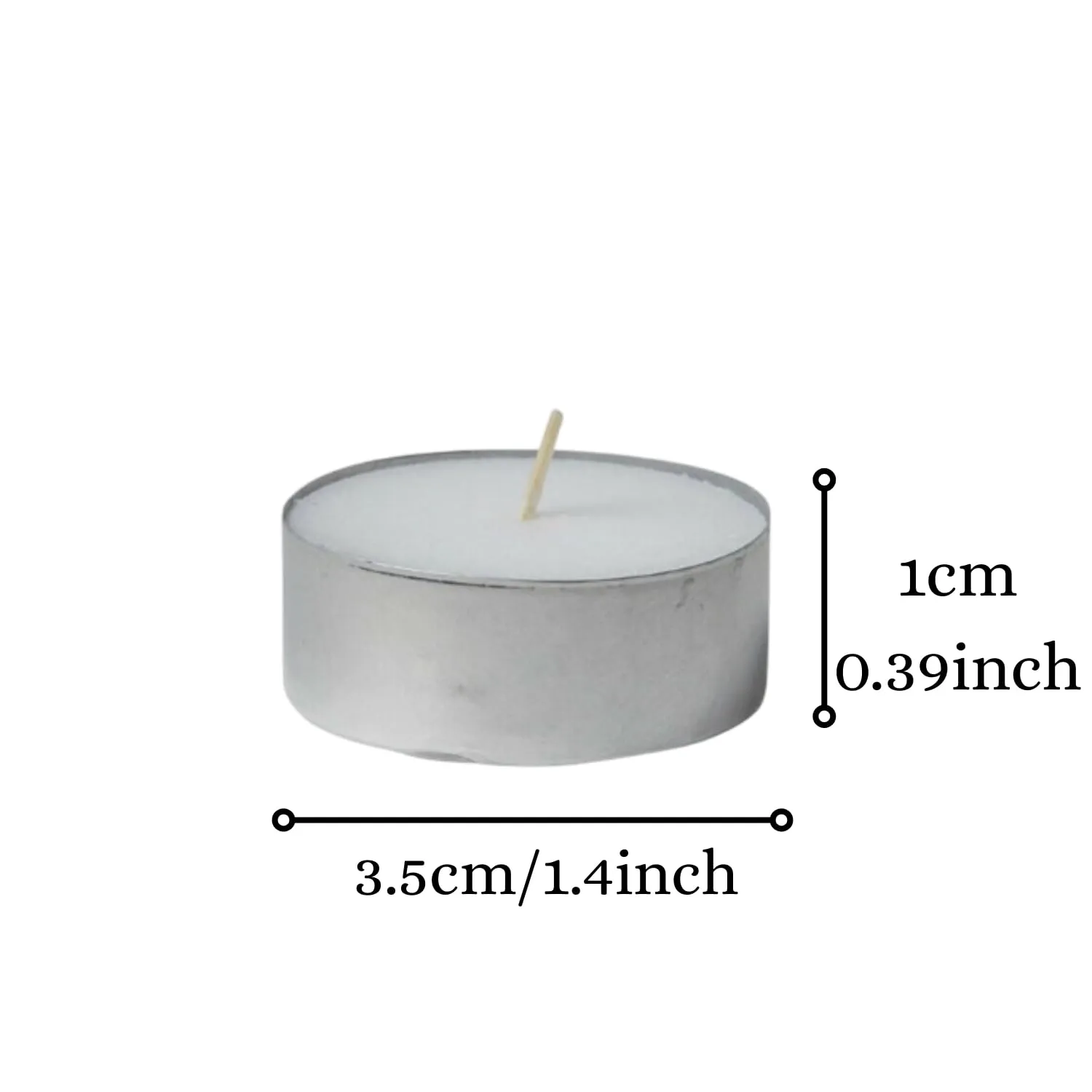 Package Content : Pack of 50 Wax Tealight Candles 3-Hour Burn Time, Paraffin Free & Smokeless Long Burning Tealights.Tealight candles produce a warm and gentle glow that instantly enhances any space. Their subtle radiance creates a calming atmosphere, perfect for dinners, parties, meditation, or relaxation. Compact yet impactful, they bring coziness and charm to homes, gardens, restaurants, or festive decorations.From living rooms to outdoor patios, tealight candles adapt beautifully to all d?cor styles. They can be placed in holders, lanterns, or jars to create stunning arrangements. Ideal for festivals, weddings, romantic evenings, or everyday use, these candles make spaces more inviting, elegant, and visually appealing.Modern tealight candles are also made from natural waxes like soy or beeswax, which are renewable, biodegradable, and clean-burning. These eco-conscious alternatives last longer, produce less soot, and are perfect for sustainable lifestyles. Reusable holders further add to their eco-friendly appeal, making them ideal for environmentally mindful buyers.Beyond decoration, tealight candles hold emotional significance. They represent comfort, hope, and celebration, making them meaningful in rituals, gatherings, and festive occasions. Whether used to honor memories, create intimacy, or brighten special events, their timeless glow spreads positivity and joy in every setting.