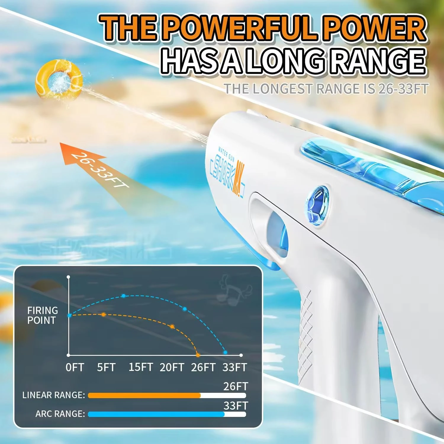Meet the Ascension Water Gun — a sleek, high-performance blaster built for serious splash action. Designed with a modern, ergonomic body, the Shark MK delivers a powerful, consistent water stream that keeps you competitive in every water fight. Its lightweight yet durable construction makes it easy to handle for both kids and adults, while the comfortable grip and smooth trigger ensure precise control even during extended play.The streamlined reservoir allows for quick refills, so you spend less time reloading and more time soaking your opponents. With its bold Shark MK branding and clean white-and-grey finish, this water gun looks as cool as it performs. Ideal for outdoor play, pool parties, beach days, or backyard battles, it’s built to withstand energetic use and endless summer fun.Whether you’re defending your turf or launching a surprise attack, the Shark MK Water Gun combines style, comfort, and splash power in one reliable package. Get ready to make waves and turn every sunny day into an action-packed water adventure.