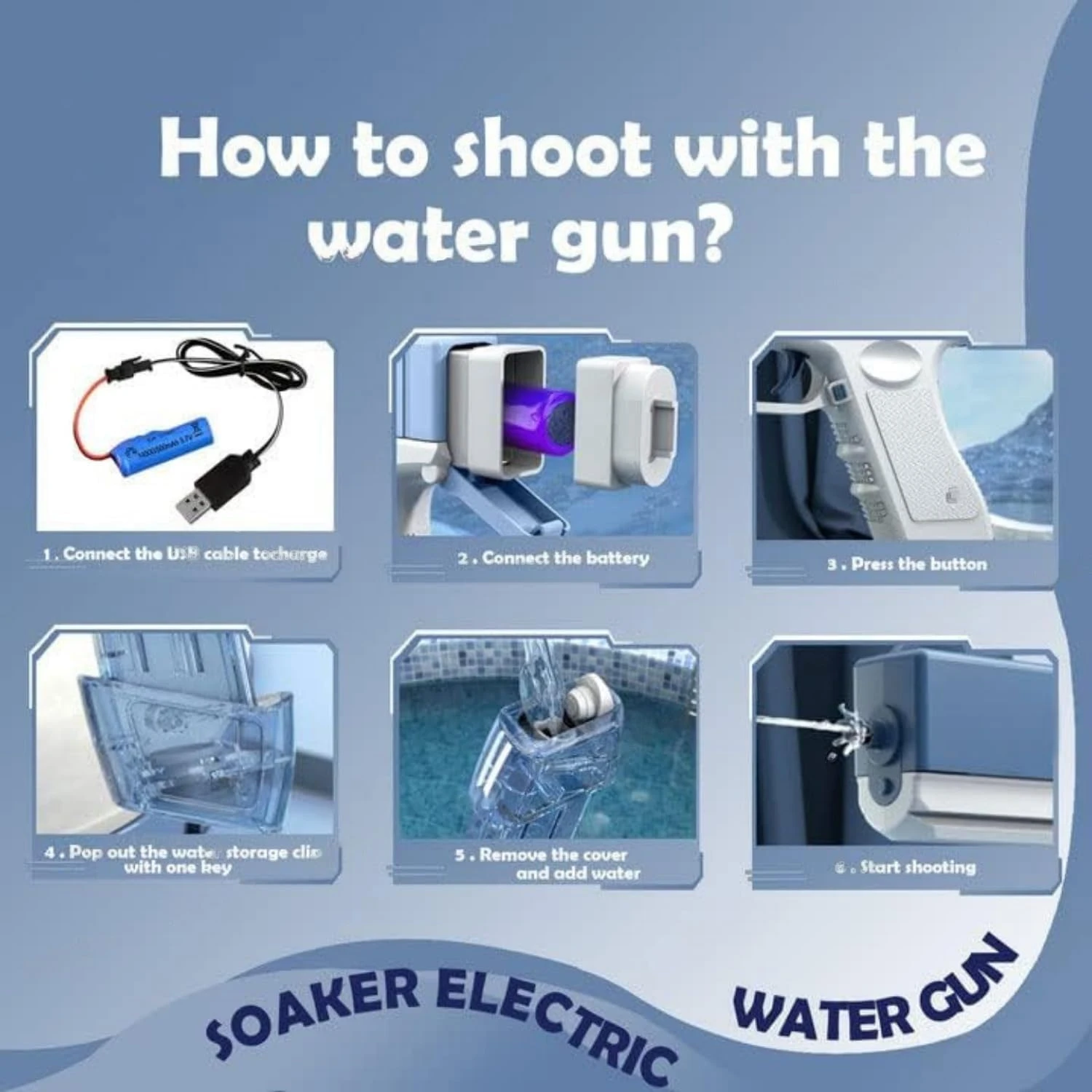 • USB RECHARGEABLE BATTERY: Equipped with a long-lasting rechargeable battery and USB charging cable this electric water gun ensures hours of uninterrupted water fights with quick charging so the fun never stops at any outdoor event.