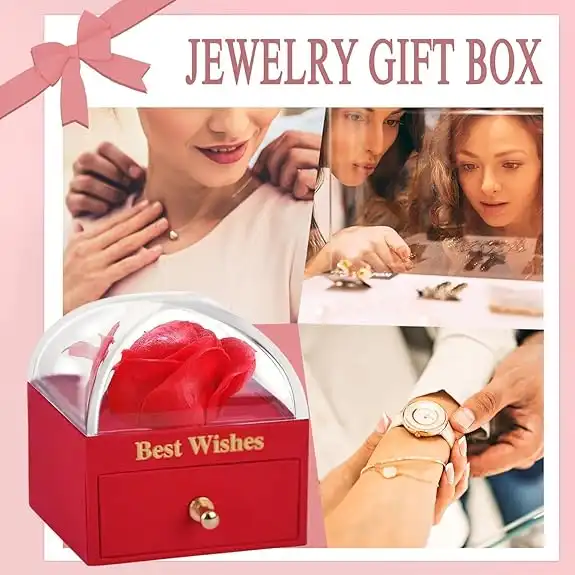 • Package Includes: Pack of 1 Preserved Red Rose Flower Gift Box & Moon Neckless(Red Round).