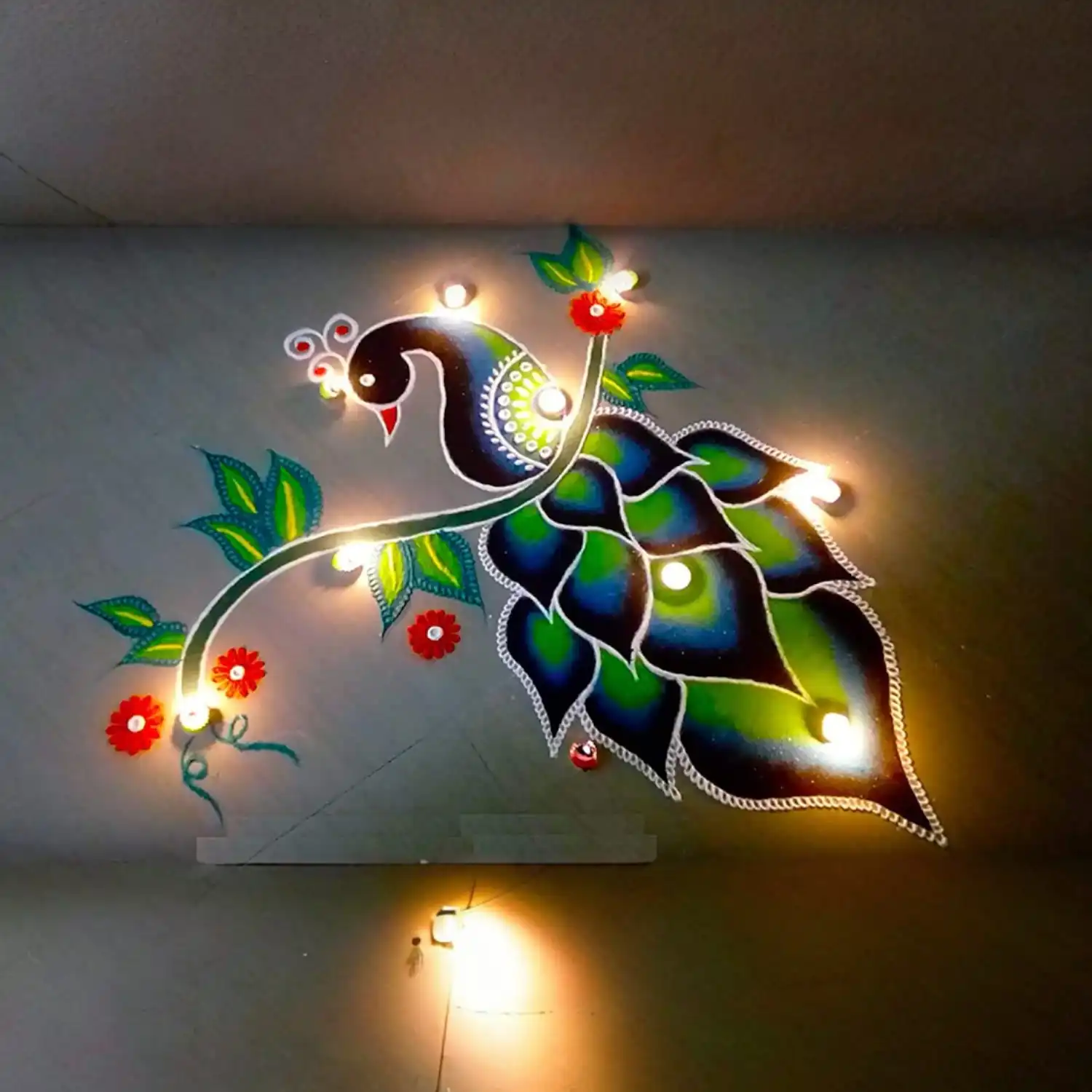 Package Contain: Set of 10 rangoli colours bottles 80g each. and 2 MDF Stencils of 4 inchX4 inch each. These rangoli color bottles provide a medium for your artistic expression during festive celebrations. They allow you to create intricate rangoli designs, patterns, and motifs, adding a touch of personal flair to your diwali decoration items. Let your creativity shine with these rangoli bottles!