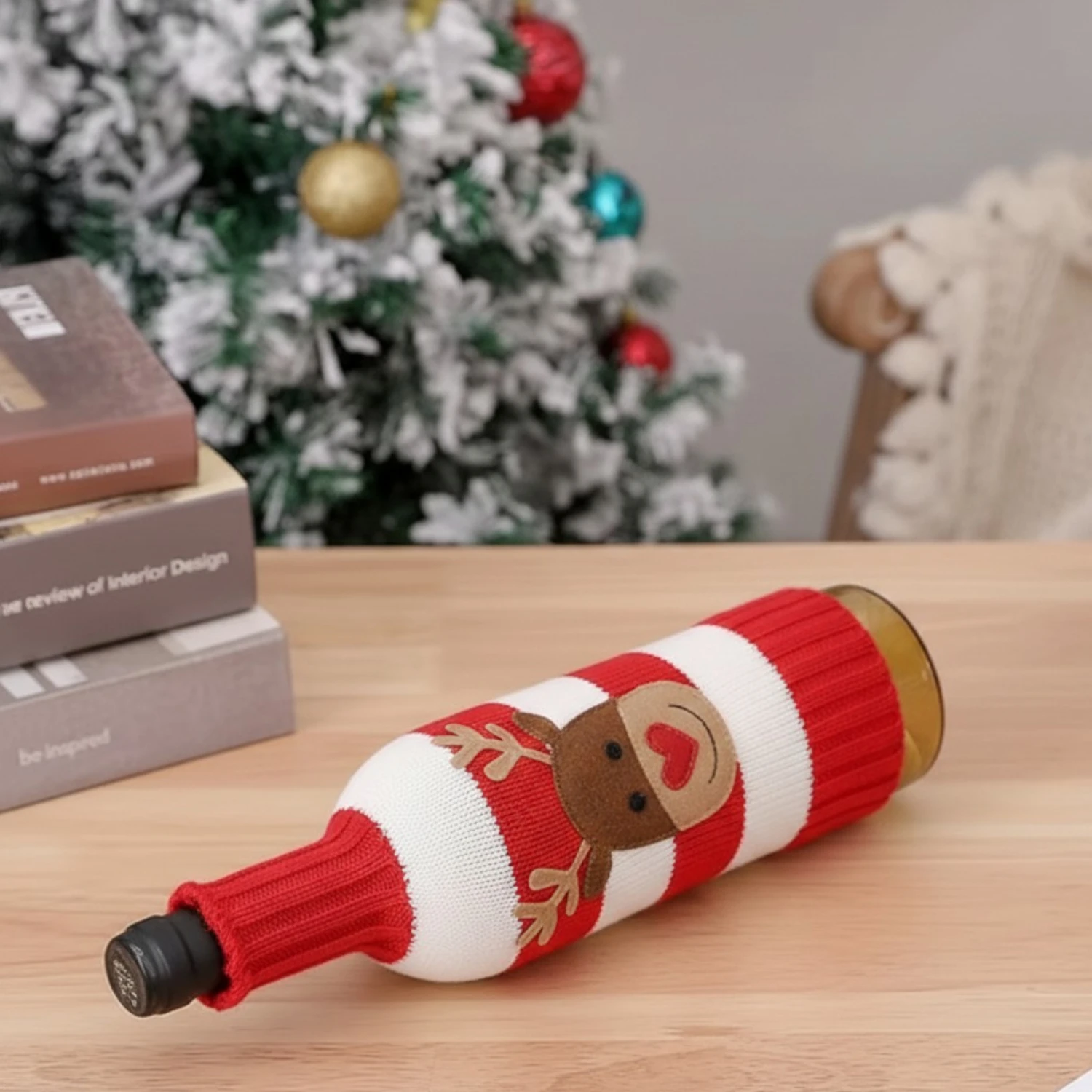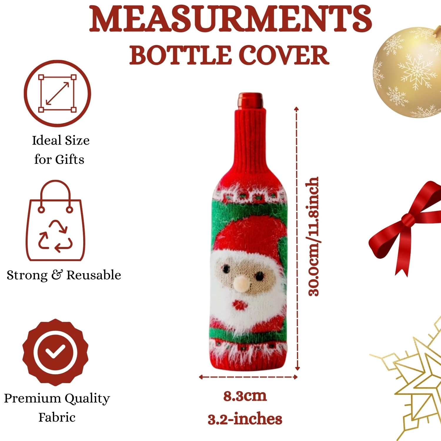 • Festive Santa Design: Adorable knitted Santa Claus pattern instantly transforms any wine or champagne bottle into a fun Christmas decoration.