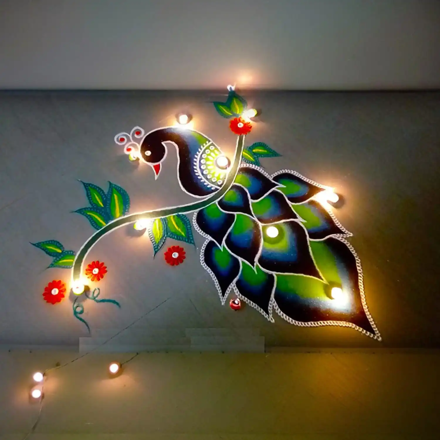 It is usually made during diwali (Deepawali), wedding, onam, pongal and other indian festivals. . Colour is made of sawdust. These colors are eco friendly.rangoli is a native of indian culture and is used in every festive occasion to decorate one’s house. These colors spread positive vibrations within the environment and make to lively and entertaining.it also signify a warm welcome for visitors. Many traditionalists also believe that drawing of rangolis on the floor near the main doorway of the house warded off evil spirits.